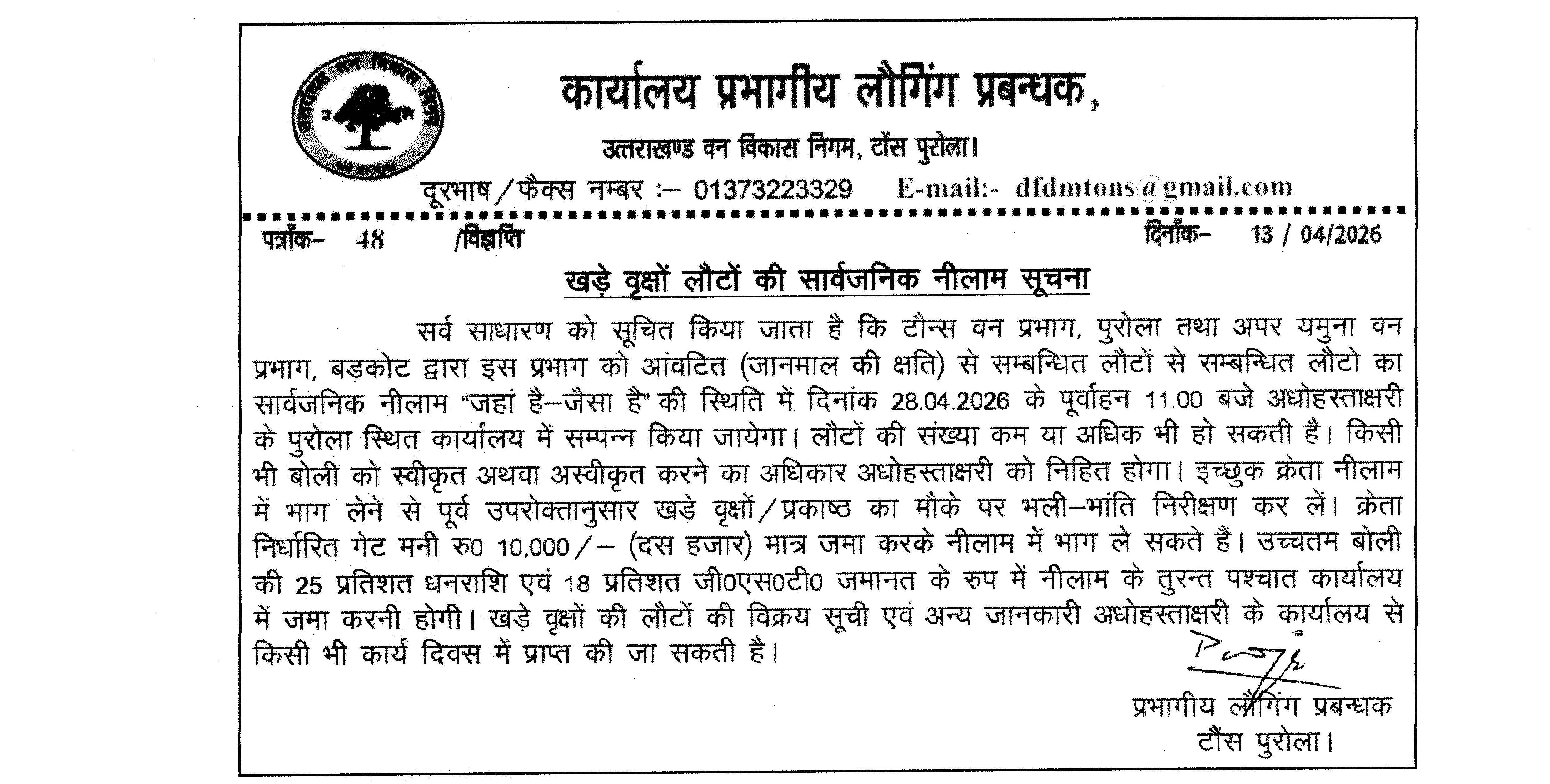 Auction:Standing Tree Public auction DLM Purola dt 28-04-2026